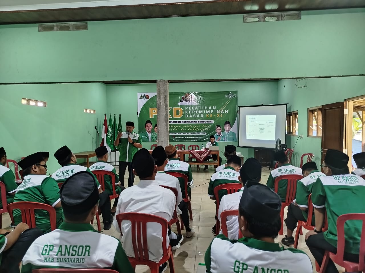 Sukoharjo – Pimpinan Anak Cabang (PAC) Gerakan Pemuda Ansor Kecamatan Bendosari sukses menyelenggarakan Pendidikan dan Pelatihan Dasar (PKD) Ansor Angkatan ke-XI pada Sabtu – Ahad, 6–7 September 2025. Kegiatan ini dipusatkan di Gedung TPQ Al-Hidayah, Manisharjo, Kecamatan Bendosari, Kabupaten Sukoharjo.